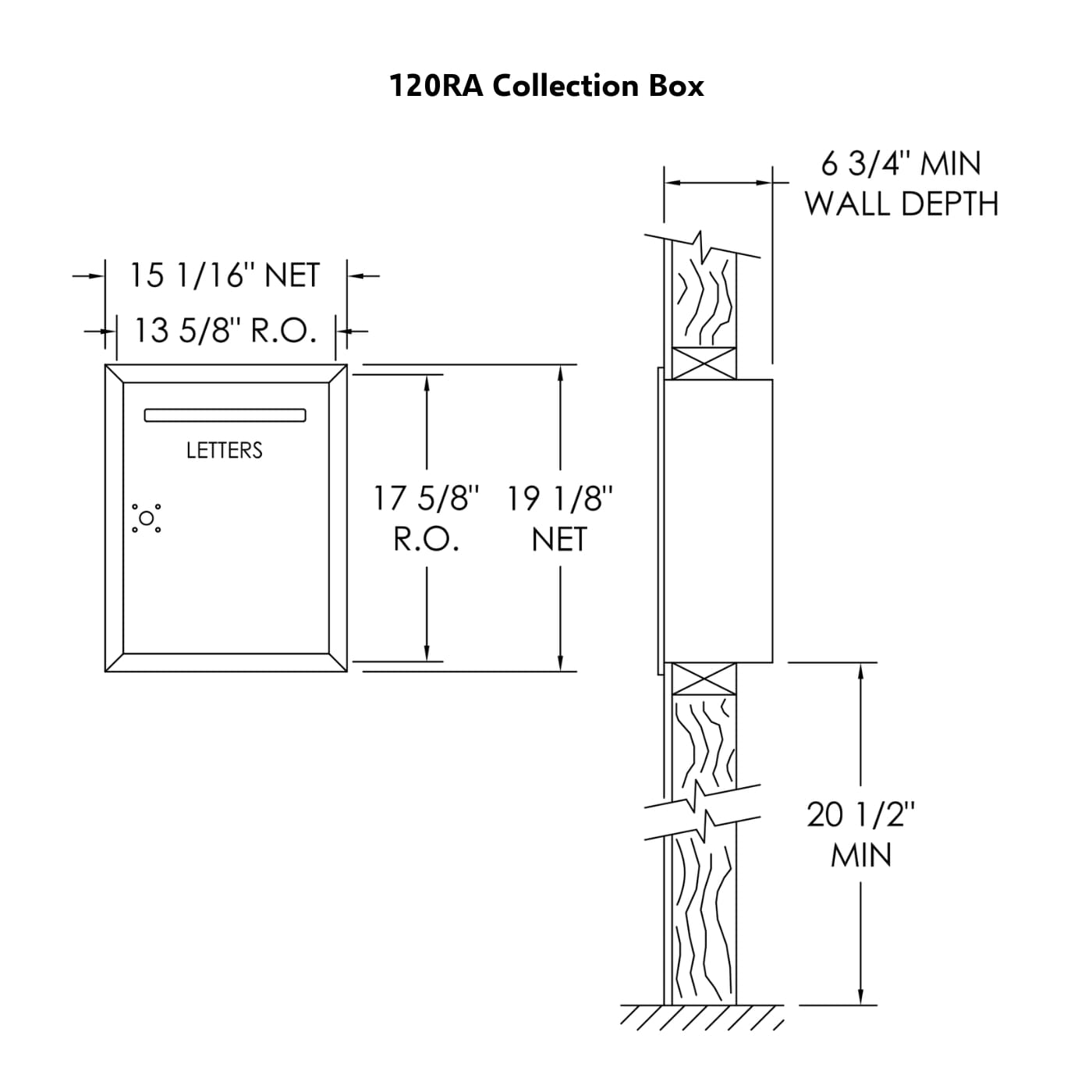 • 120 Series fully recessed aluminum collection box includes mailslot for collection, USPS lock preparation and engraving