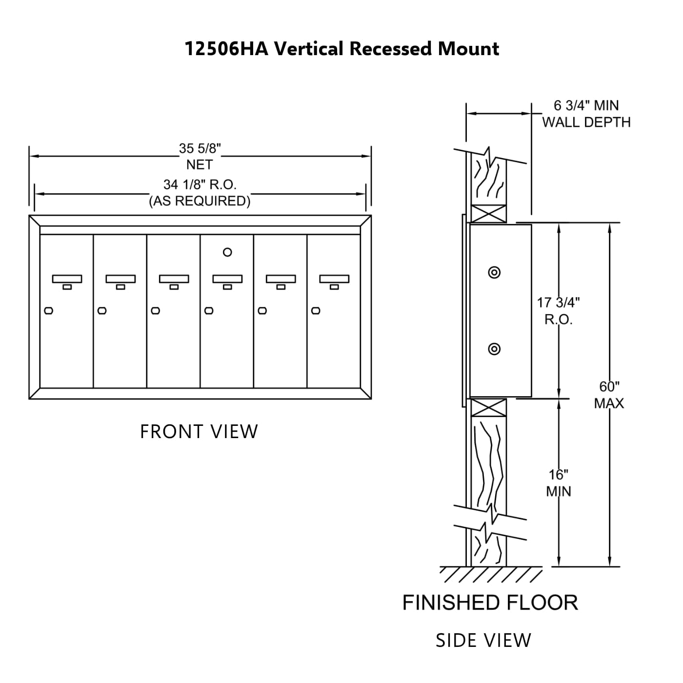 • Includes vertical mailbox with 6 doors, top load, fully recessed