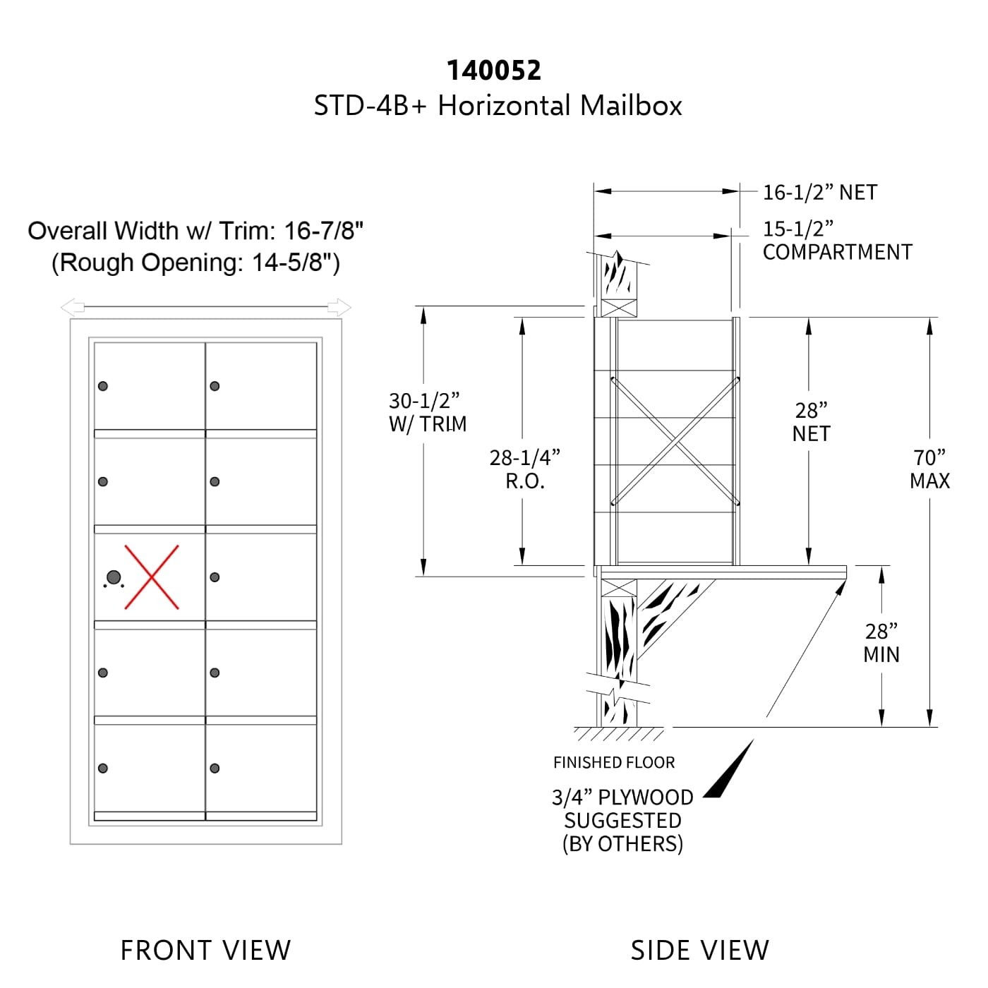 • Each tenant door includes clear plastic window with metal backplate and card for tenant number identification and labeling in the field