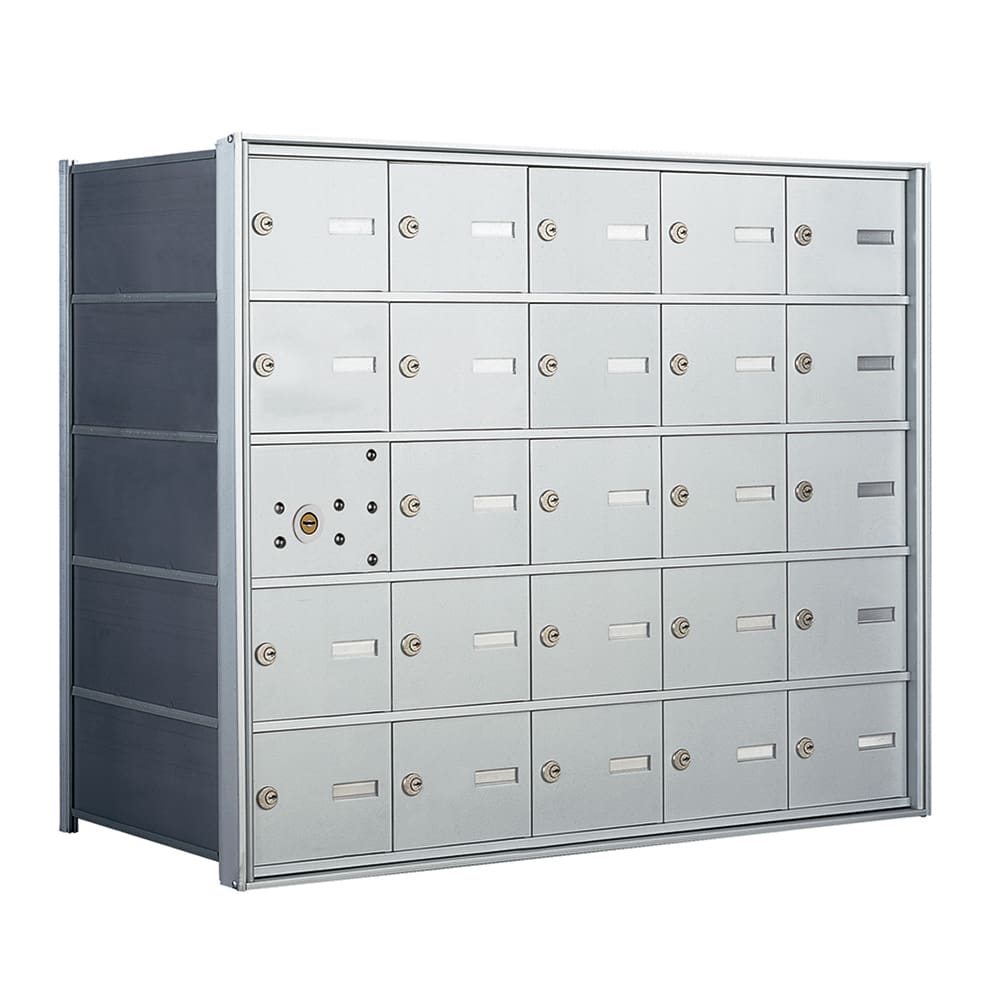 • Horizontal mailbox unit is 5 doors high and 5 doors – one compartment reserved for USPS arrow lock
