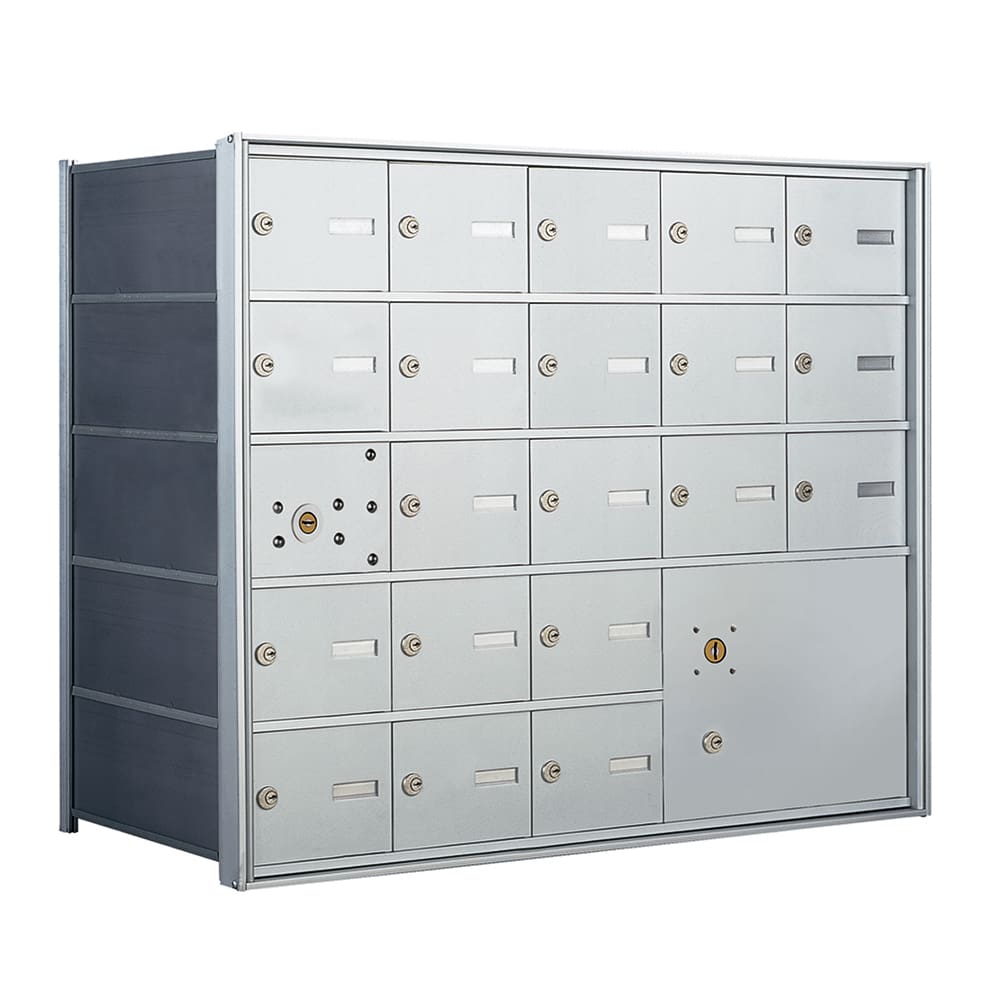 • Horizontal mailbox unit is 5 doors high and 5 doors wide. One compartment reserved for USPS arrow lock.