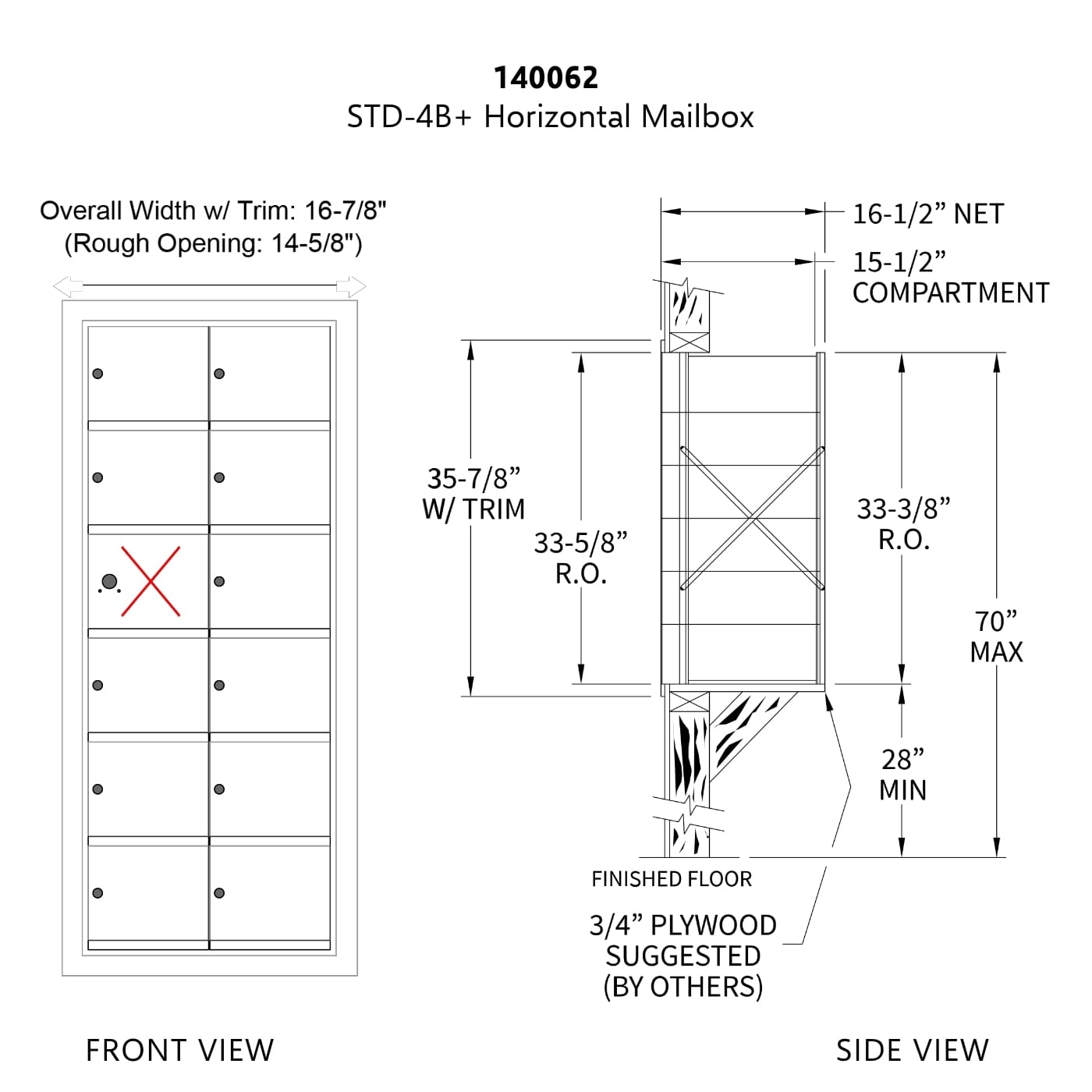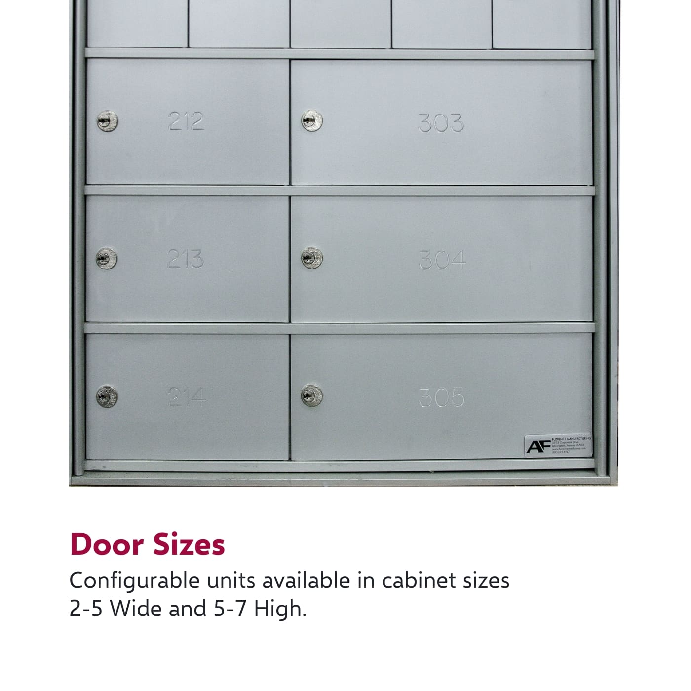 • Horizontal mailbox unit is 6 doors high and 2 doors – one compartment reserved for USPS arrow lock