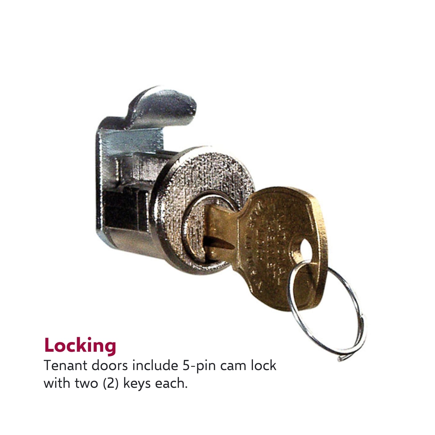 • Tenant doors include 5-pin cam lock with two (2) keys each