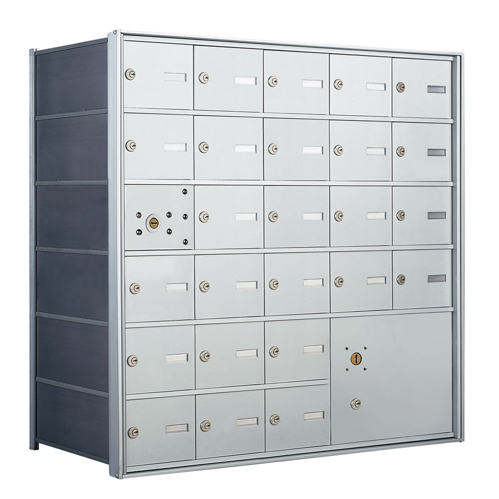 • Horizontal mailbox unit is 6 doors high and 5 doors wide. One compartment reserved for USPS arrow lock.