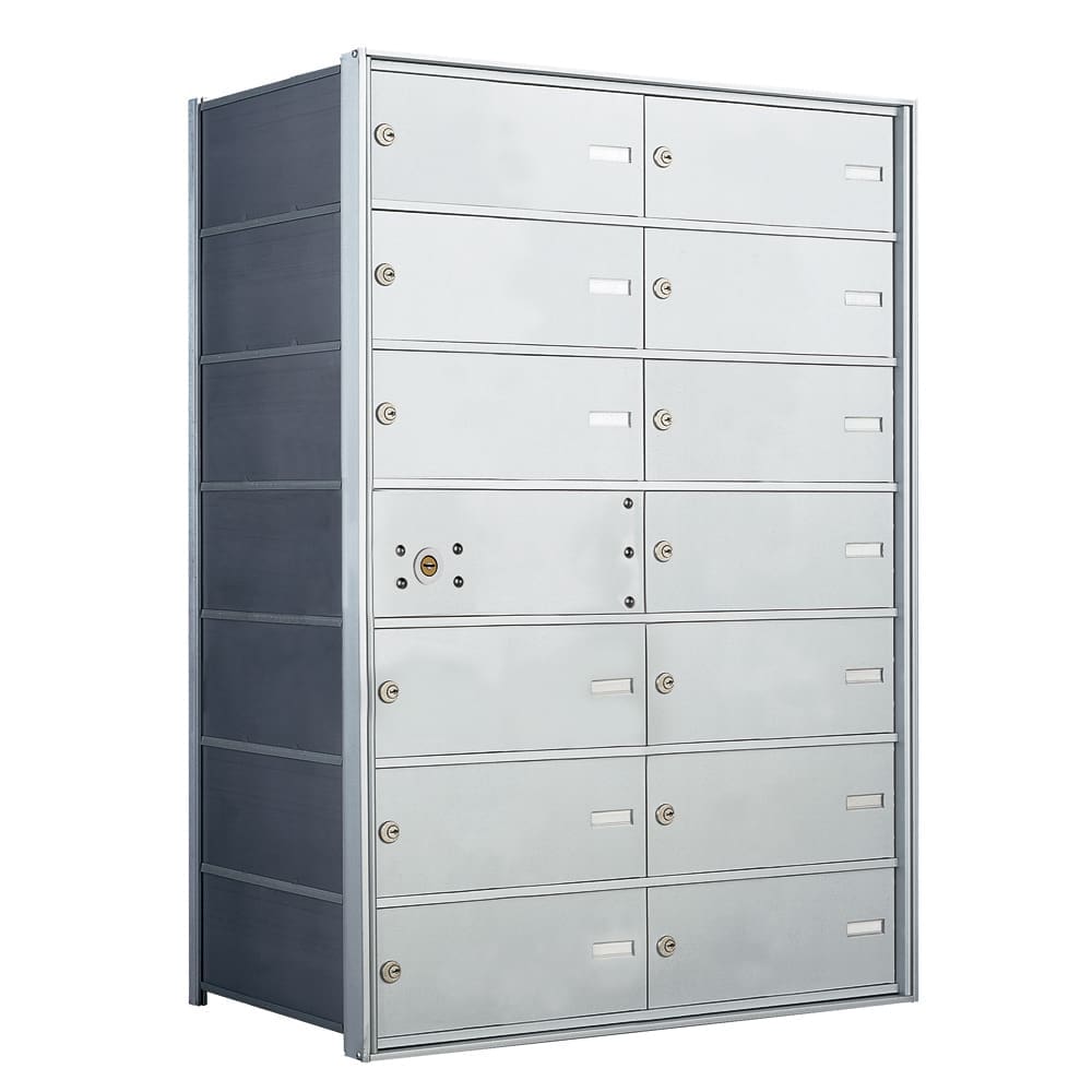 • Horizontal mailbox with 13 double wide doors, front load, fully recessed