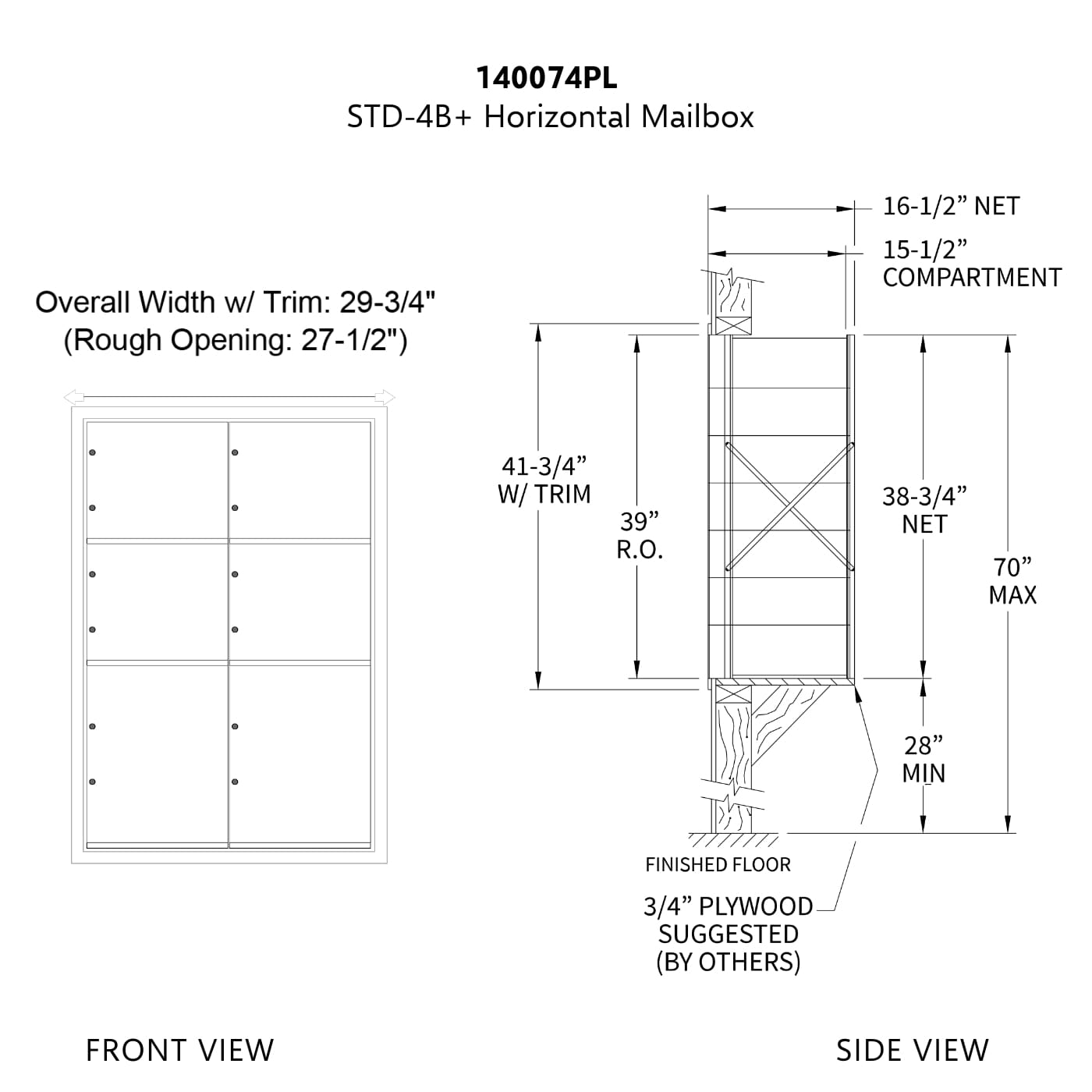 • Horizontal mailbox unit is 7 doors high and 4 doors wide