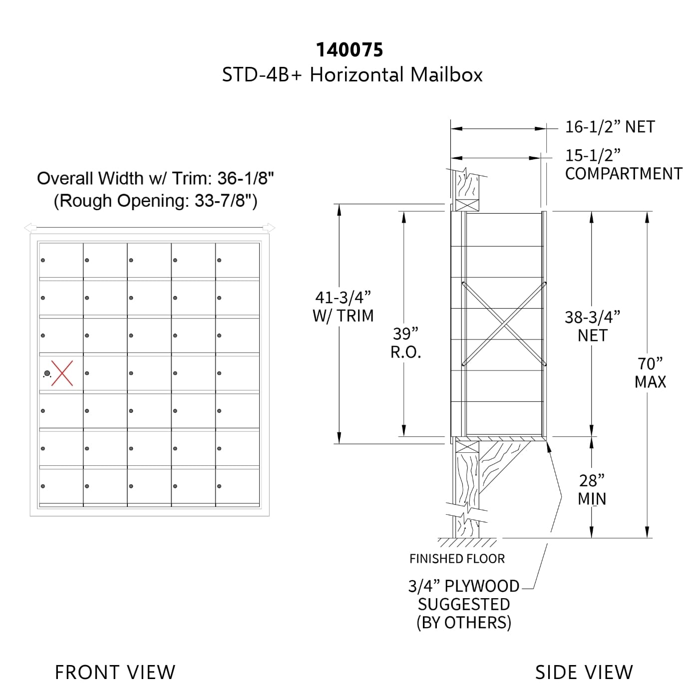 • Horizontal mailbox, front load with 34 doors, front load, fully recessed.