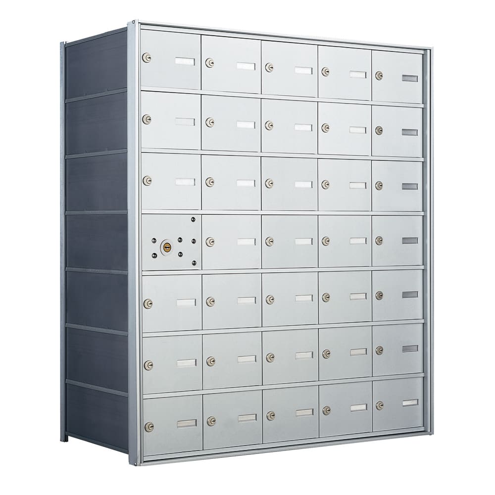 • Horizontal mailbox unit is 7 doors high and 5 doors – one compartment reserved for USPS arrow lock.