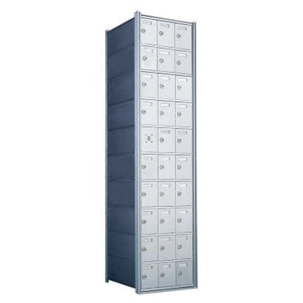 • Horizontal mailbox unit is 10 doors high and 3 doors wide – one compartment reserved for private master lock