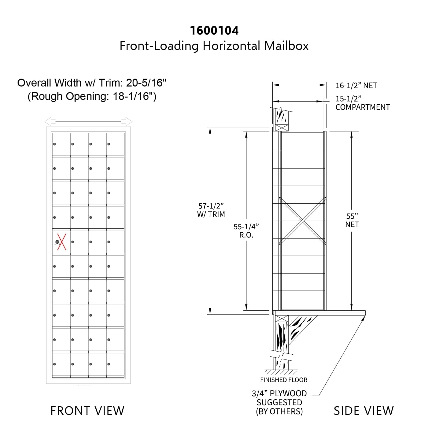 • Horizontal mailbox, front load with 39 doors, front load, fully recessed