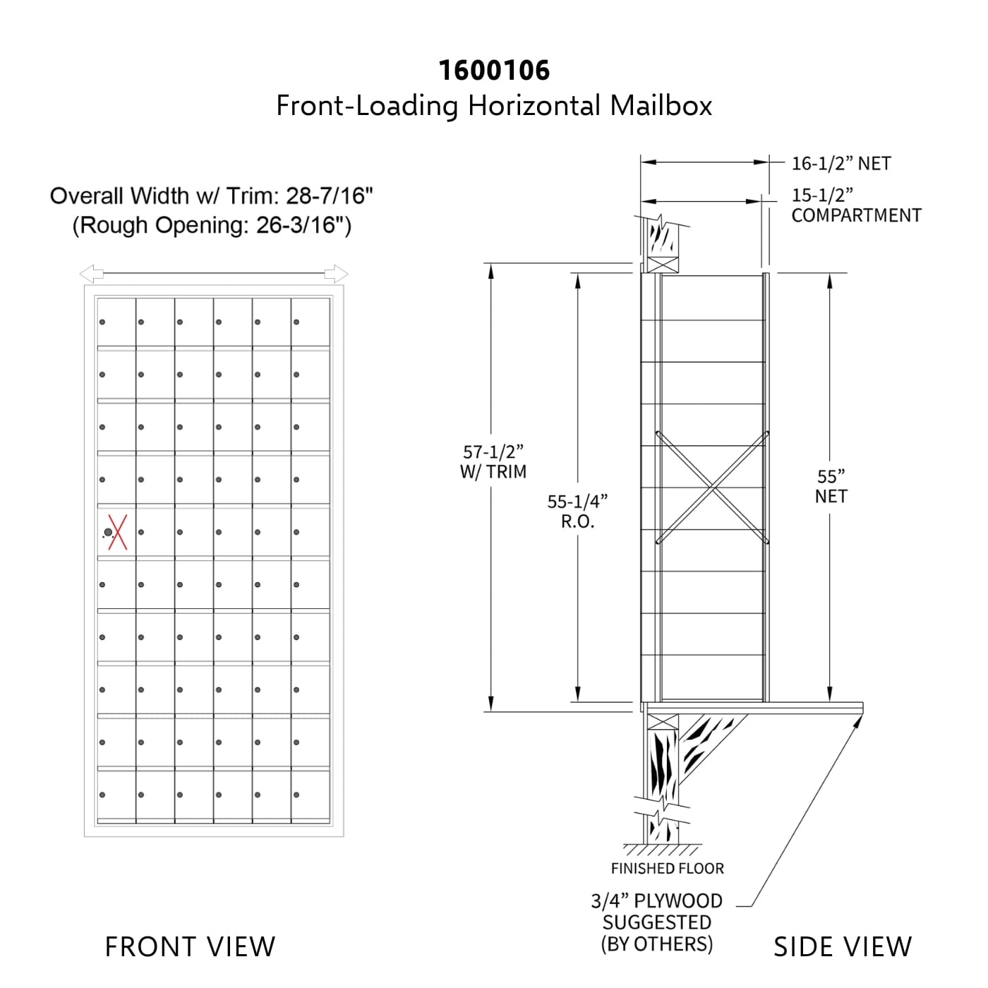 • Horizontal mailbox, front load with 59 doors, front load, fully recessed