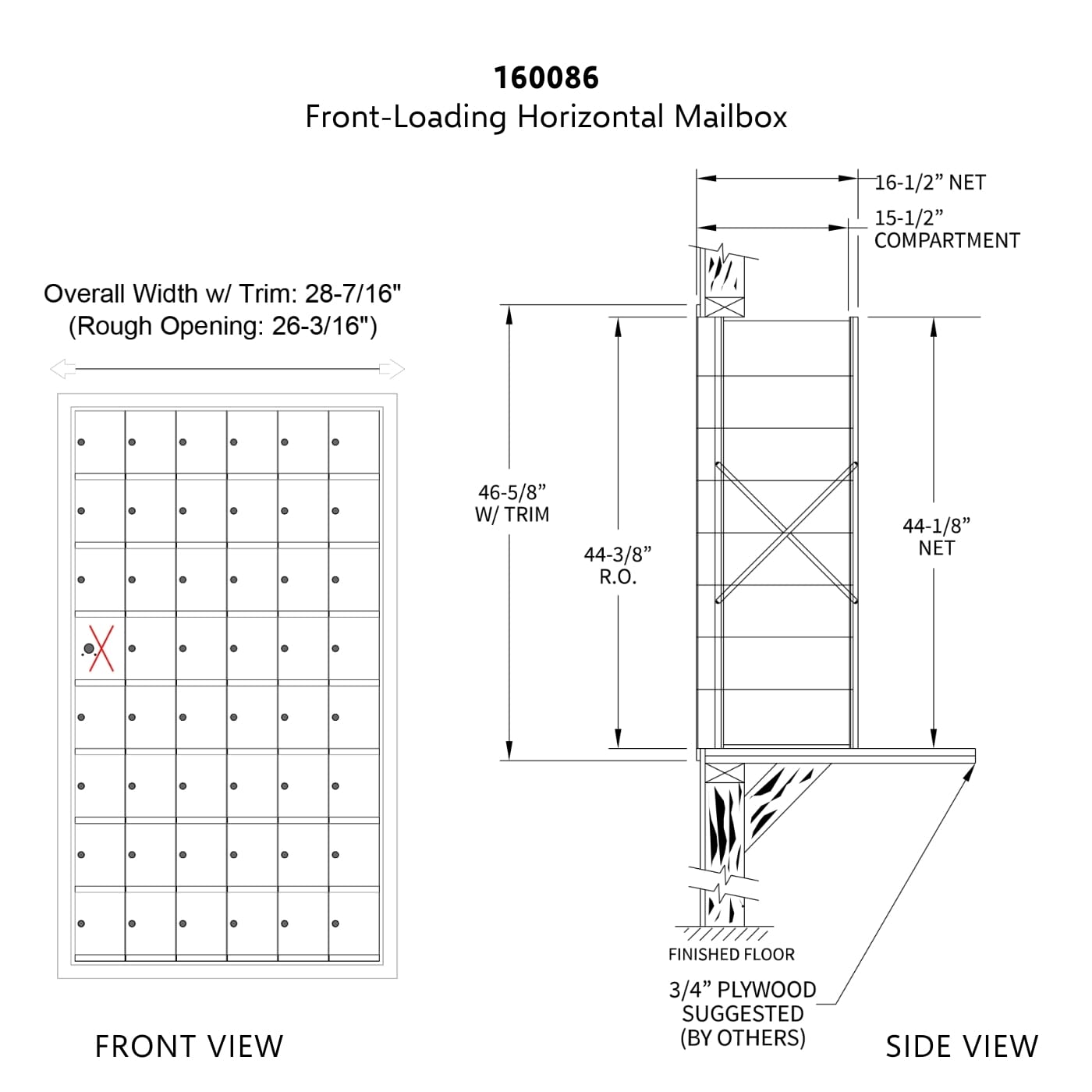 • Horizontal mailbox, front load with 47 doors, front load, fully recessed