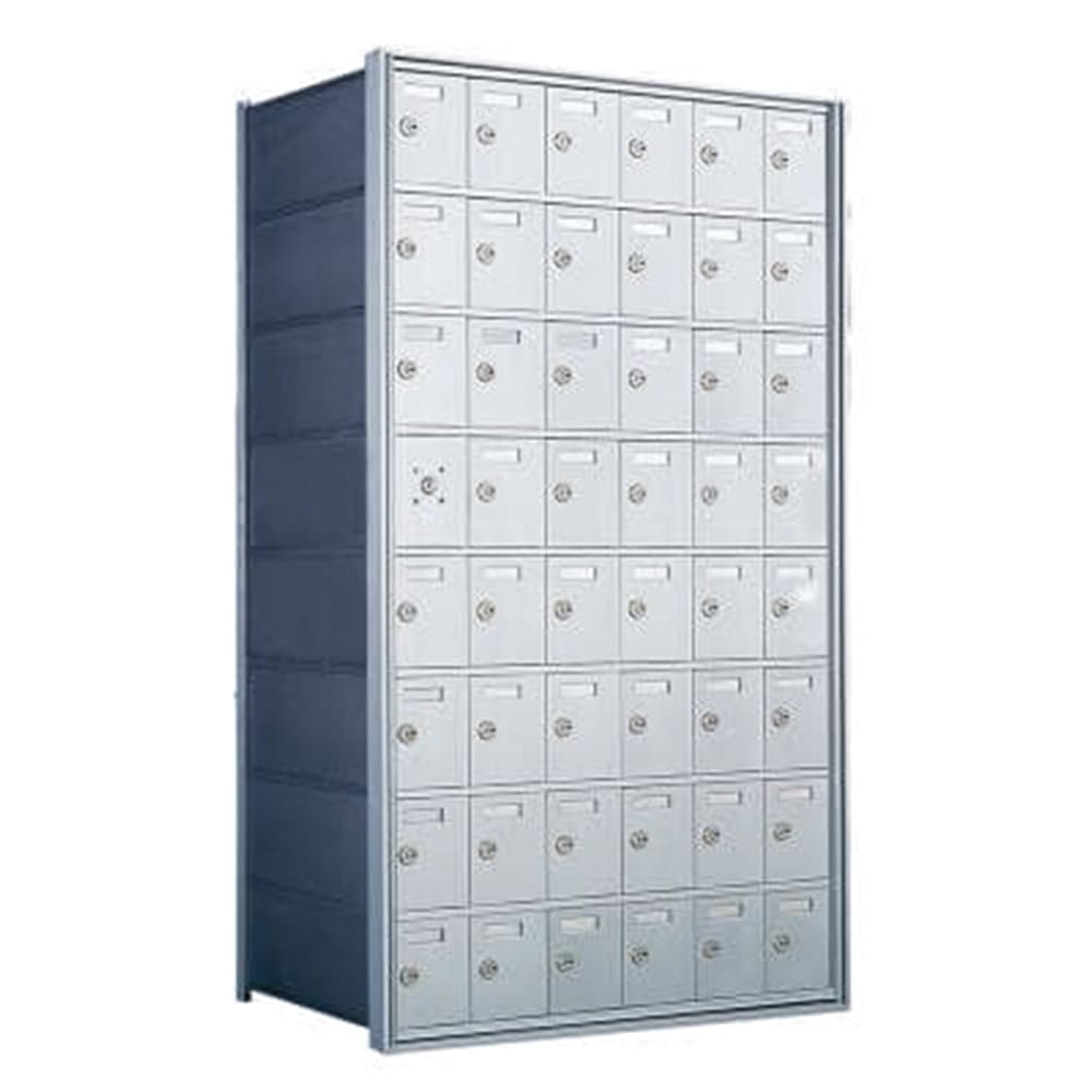 • Horizontal mailbox unit is 8 doors high and 6 doors wide – one compartment reserved for private master lock