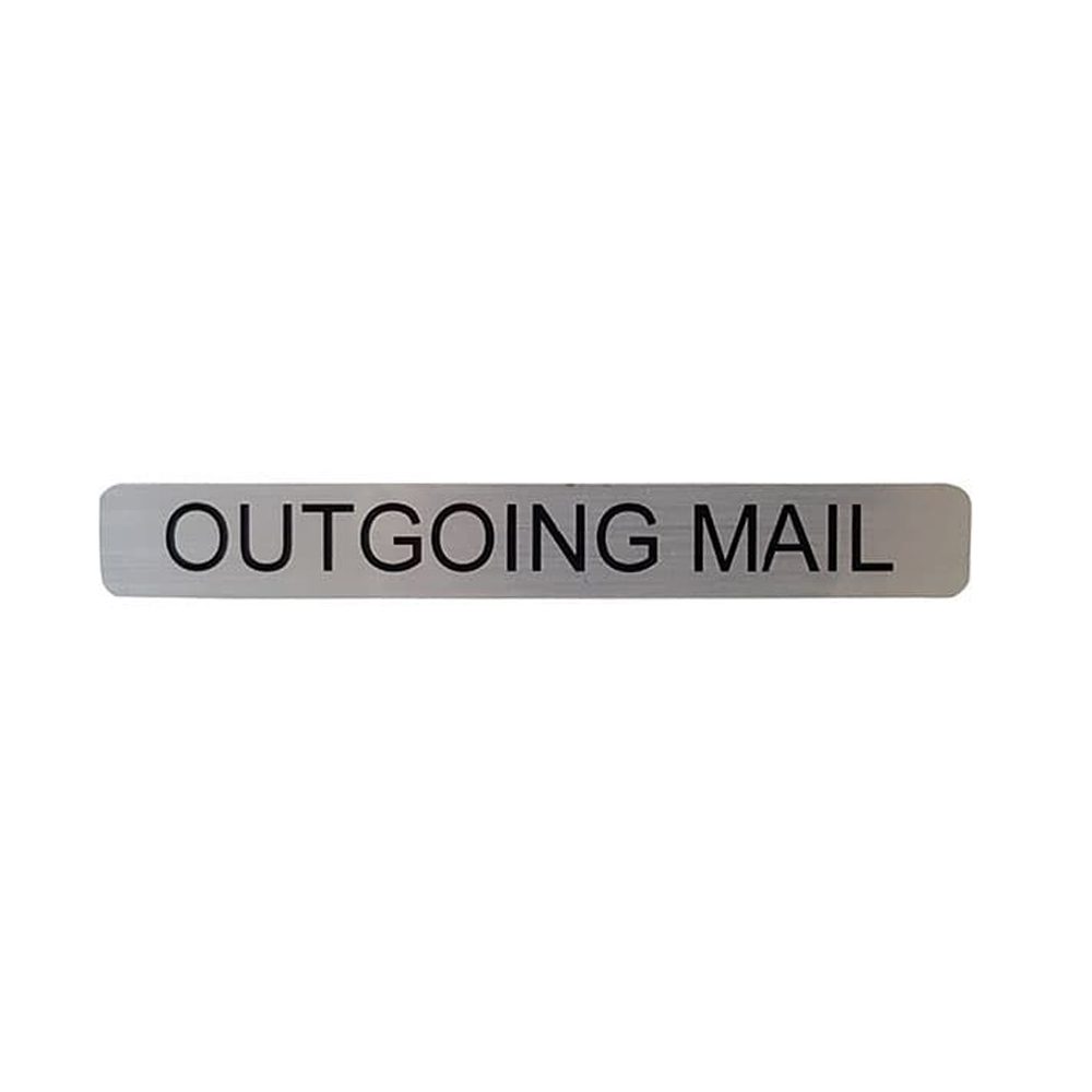 Marketing Copy: Label for outgoing mail hood – metal adhesive with black lettering ‘outgoing mail’