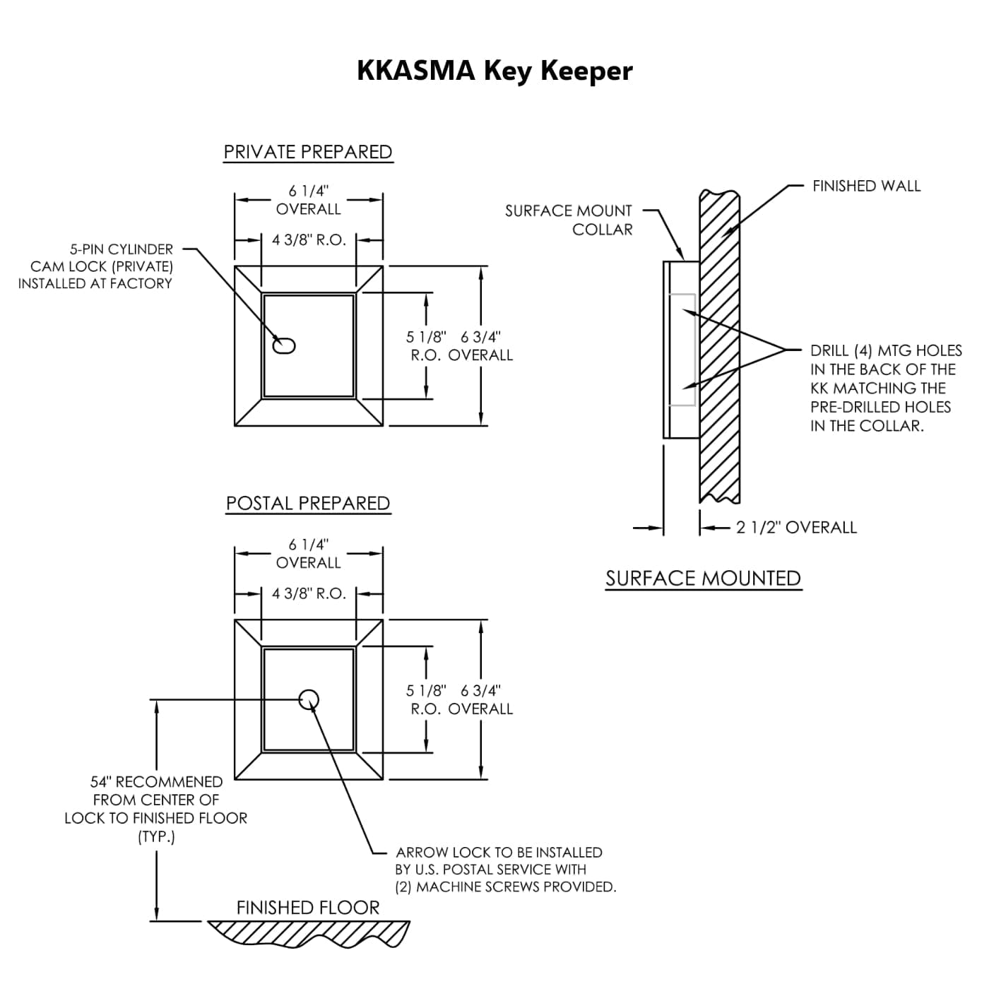 Loose key keeper in aluminum finish with Postal lock prep, surface mount