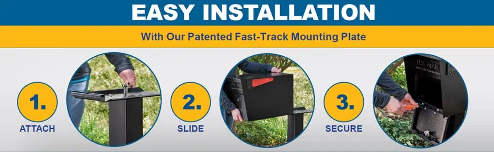 This 14- and 16-gauge galvanized steel mailbox features our same patented anti-pry latch locking mechanism as the Mail Boss and Package Master models. The baffle bin door design allows for delivery of small mail bundles and awkward packages without compromising security. This model includes our patented Fast-Trak Mounting Plate allowing for easy and straightforward installation.