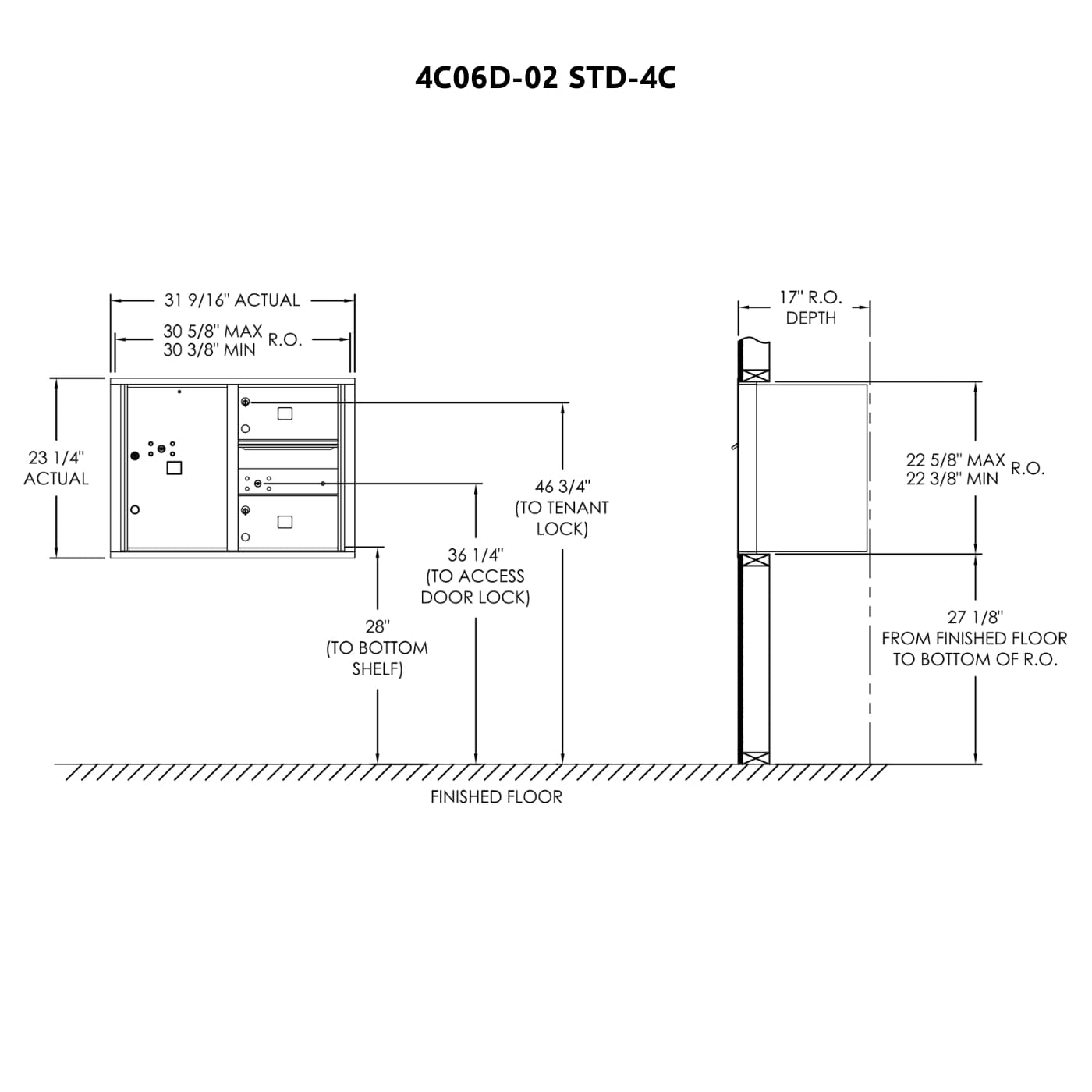 - 4C standard mailboxes are fully-recessed for in-wall mounting