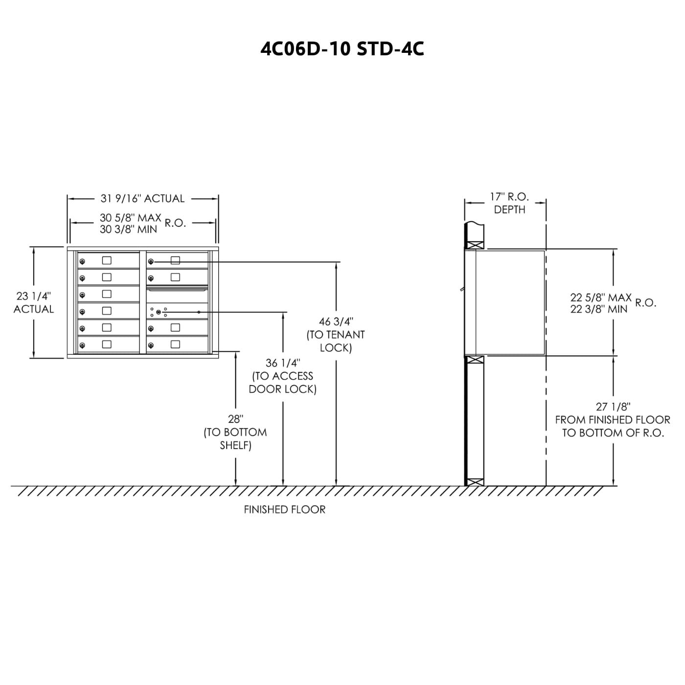 • 4C standard mailboxes are fully-recessed for in-wall mounting