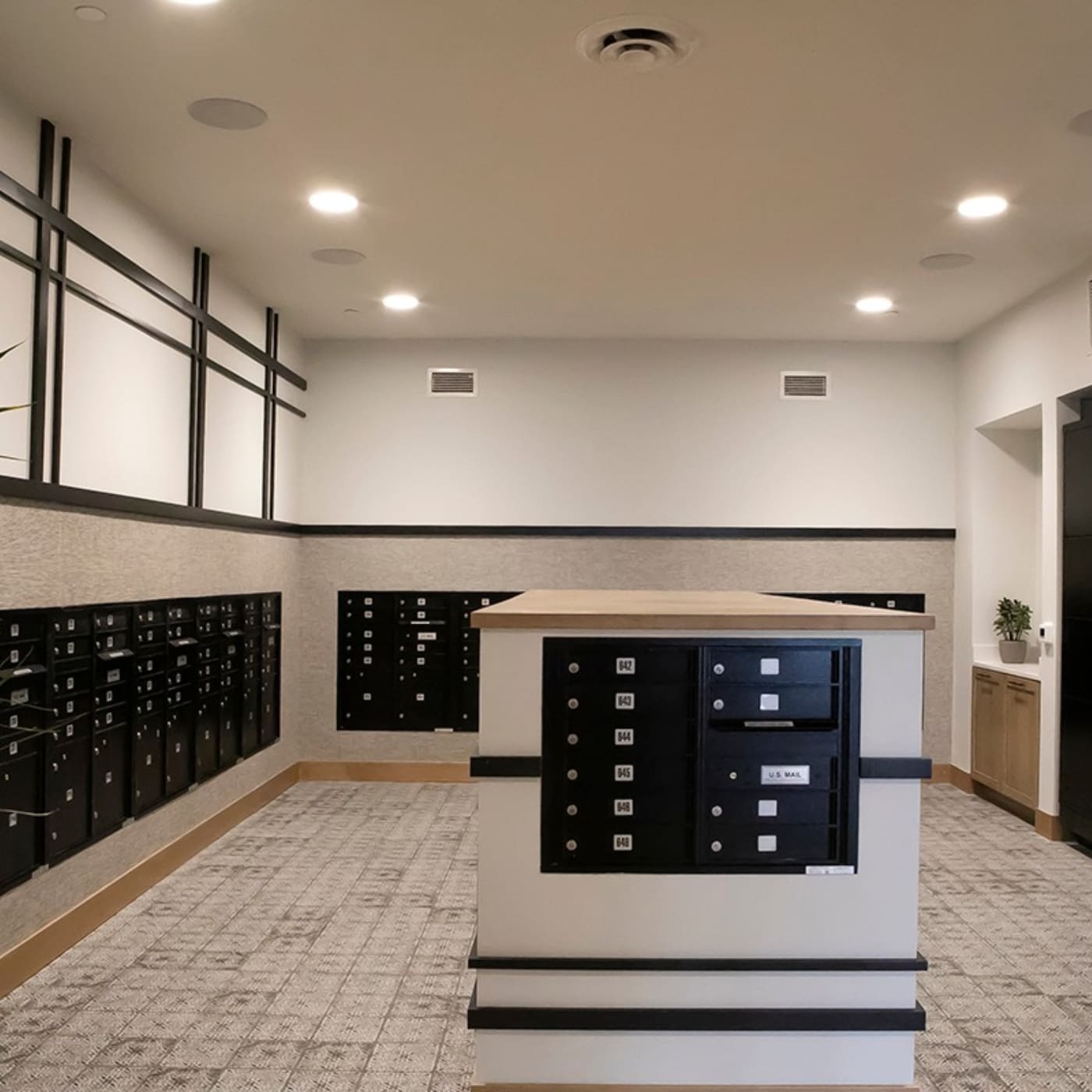 • USPS regulations require a minimum of one parcel locker for every ten tenant compartments and one outgoing mail slot per unit