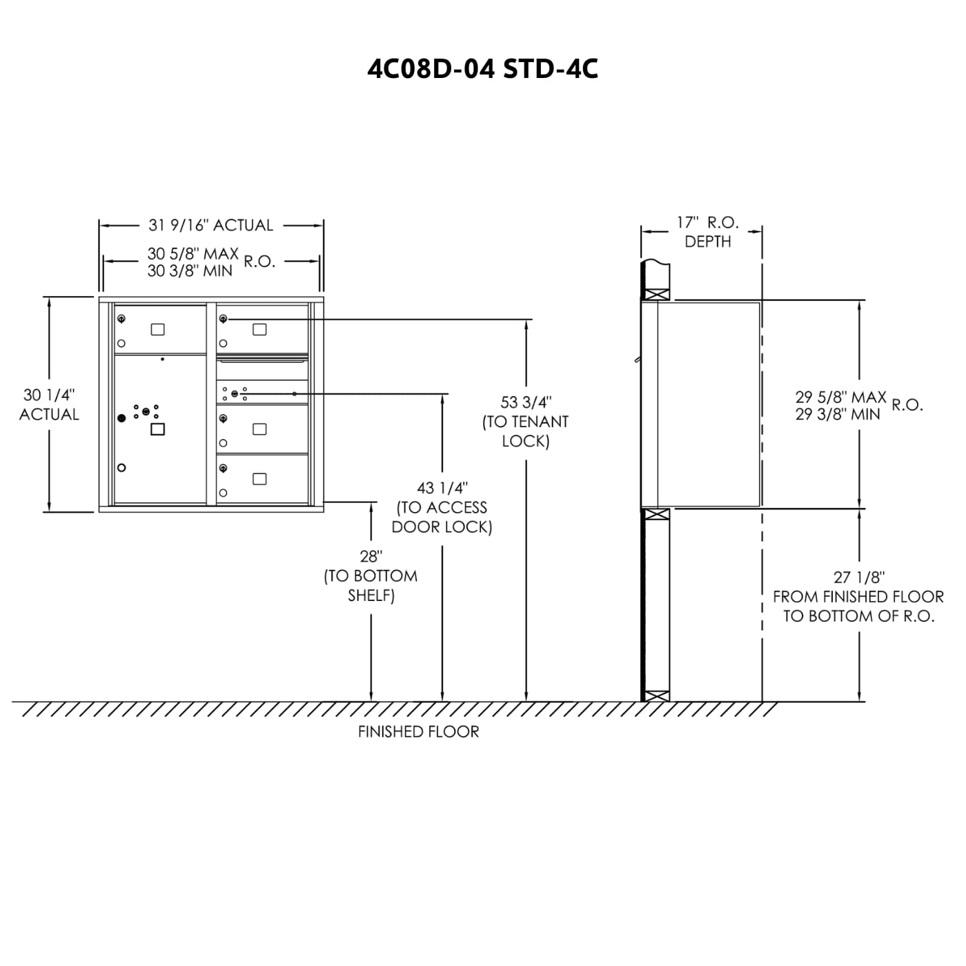 - 4C standard mailboxes are fully-recessed for in-wall mounting
