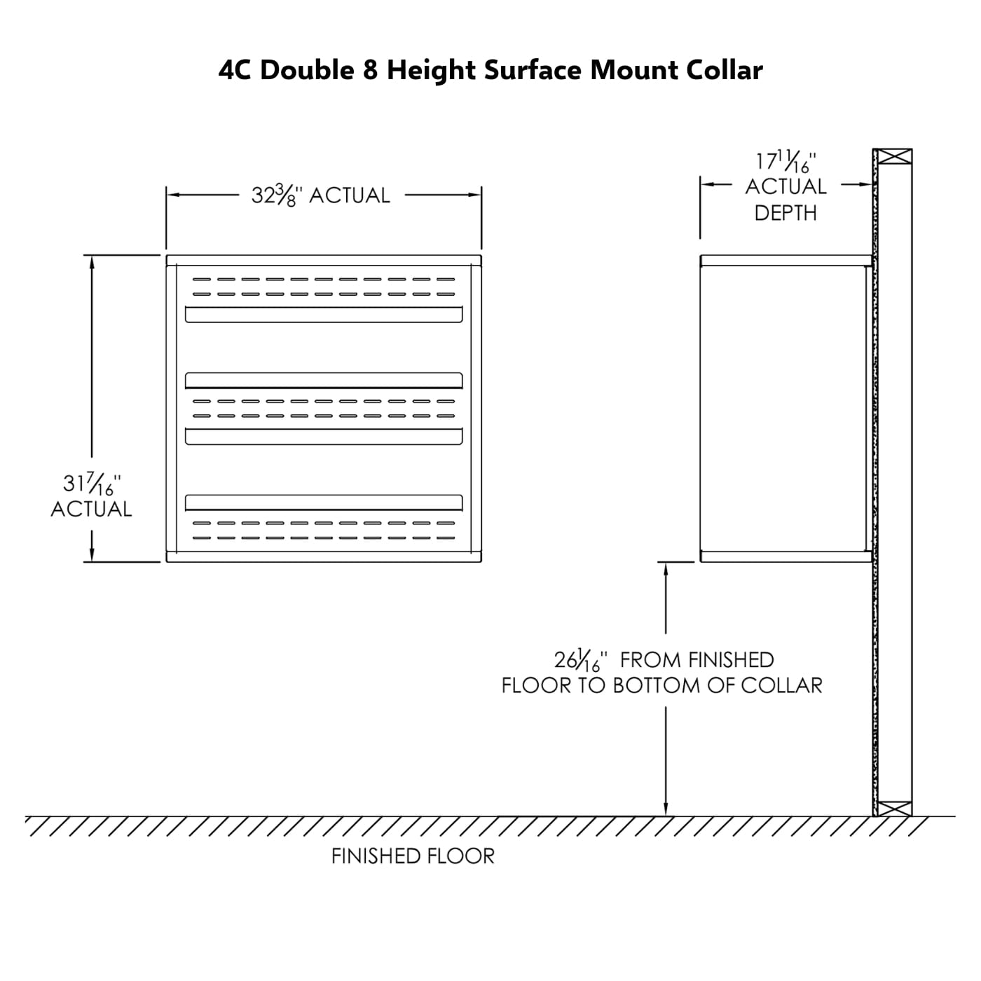 Ideal for settings with limited wall depth, this solution provides greater flexibility in mailbox placement and installation. This heavy-duty STD-4C mailbox enclosure allows standard modules to quickly and easily be mounted to any flat surface. The easy-to-assemble collar has an industry exclusive slotted back design for ease in installation and reduction of overall unit weight. Surface mounted 4C units should be installed indoors or under a weather protected cover outdoors.