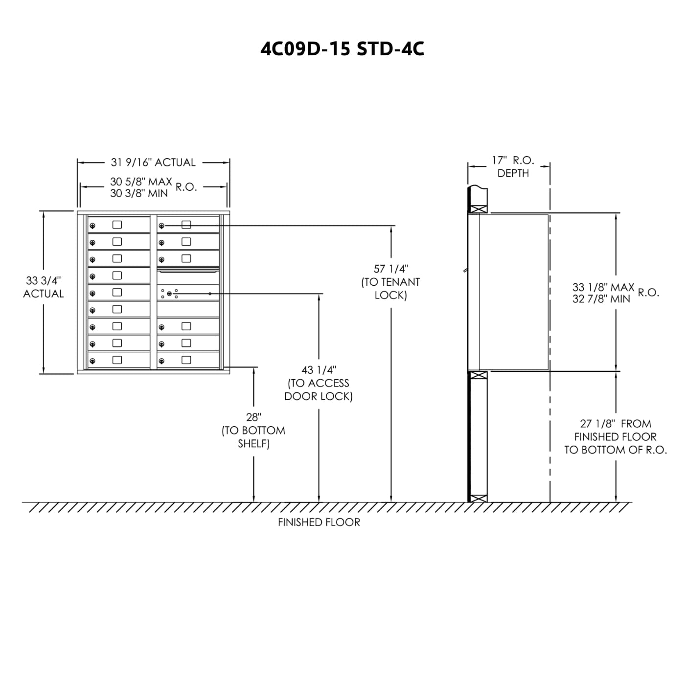 - 4C standard mailboxes are fully-recessed for in-wall mounting