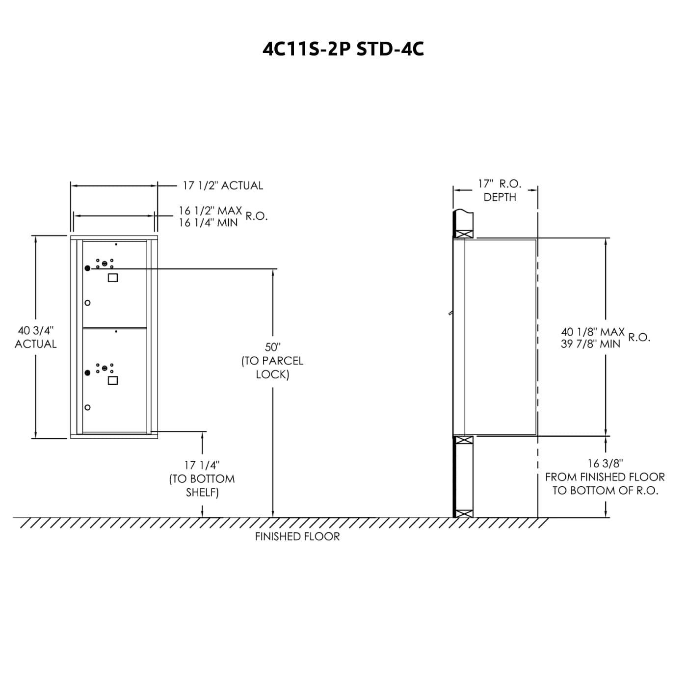 • 4C standard mailboxes are fully-recessed for in-wall mounting