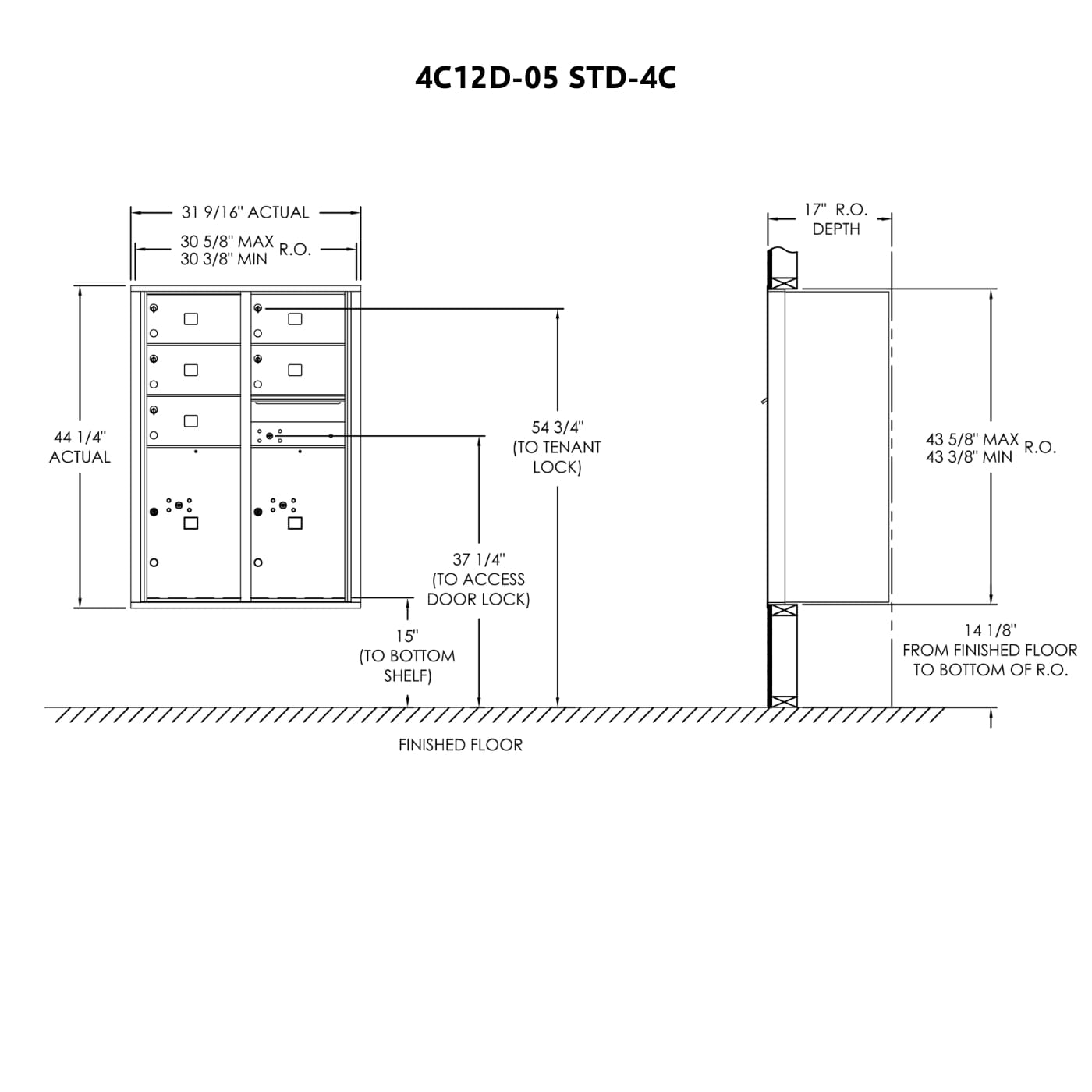 • 4C standard mailboxes are fully-recessed for in-wall mounting