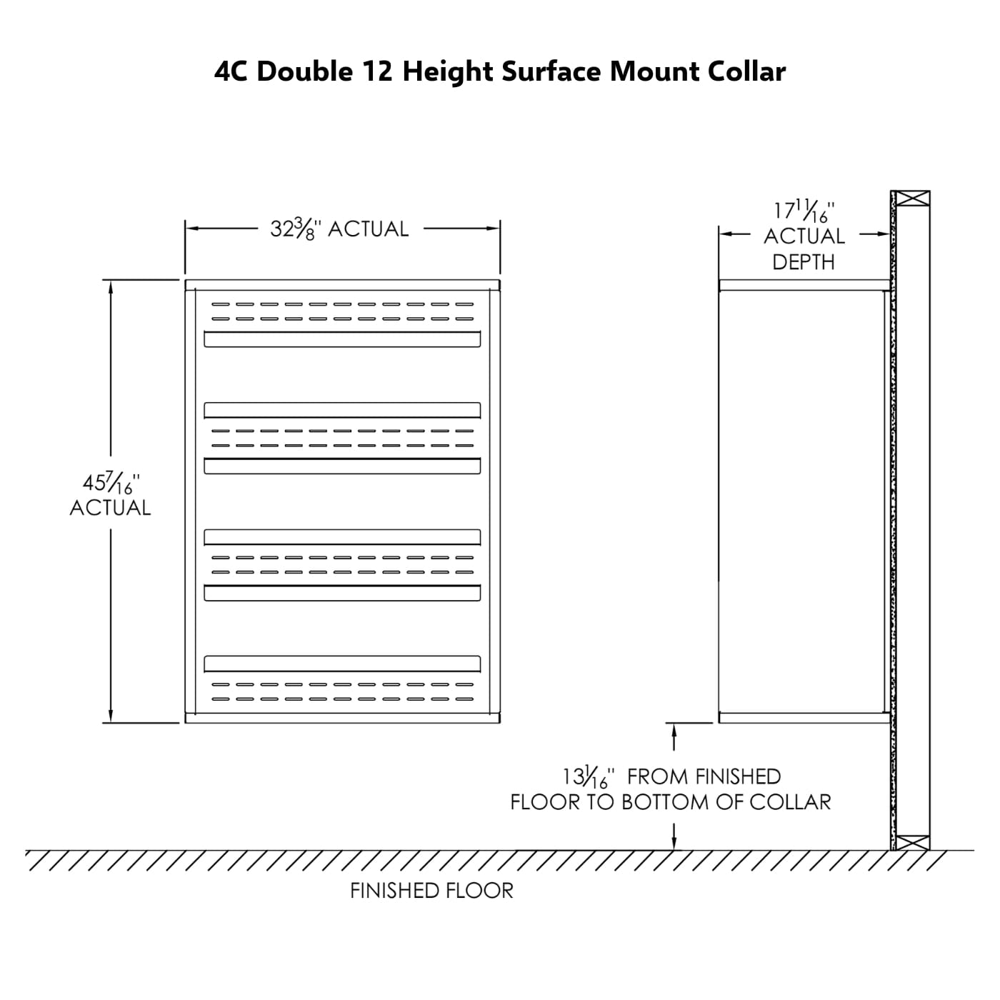 Ideal for settings with limited wall depth, this solution provides greater flexibility in mailbox placement and installation. This heavy-duty STD-4C mailbox enclosure allows standard modules to quickly and easily be mounted to any flat surface. The easy-to-assemble collar has an industry exclusive slotted back design for ease in installation and reduction of overall unit weight. Surface mounted 4C units should be installed indoors or under a weather protected cover outdoors.