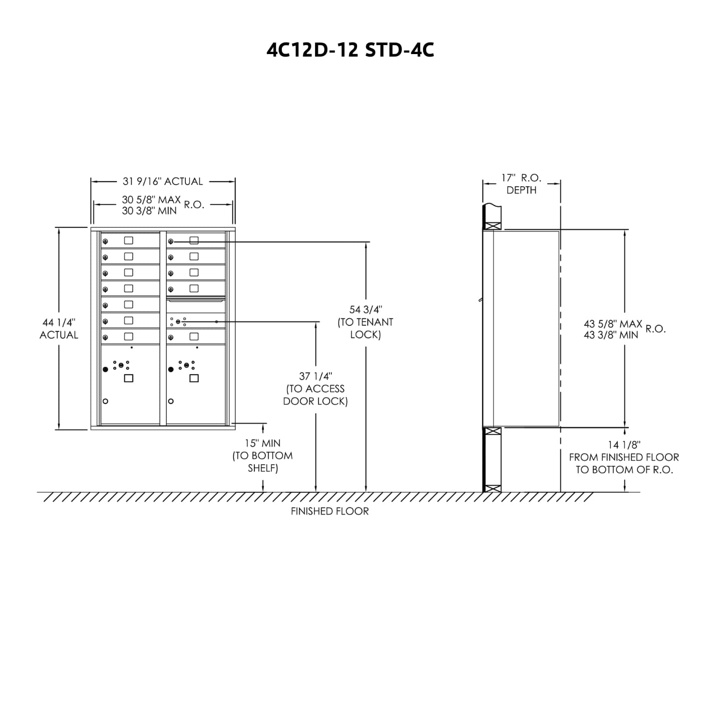- 4C standard mailboxes are fully-recessed for in-wall mounting