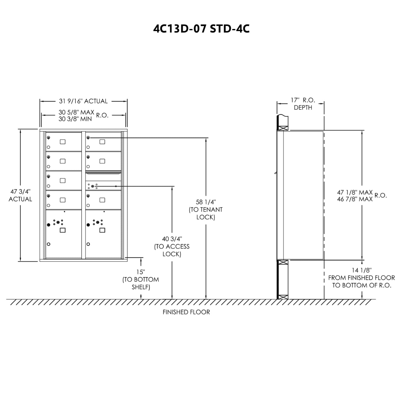 - 4C standard mailboxes are fully-recessed for in-wall mounting