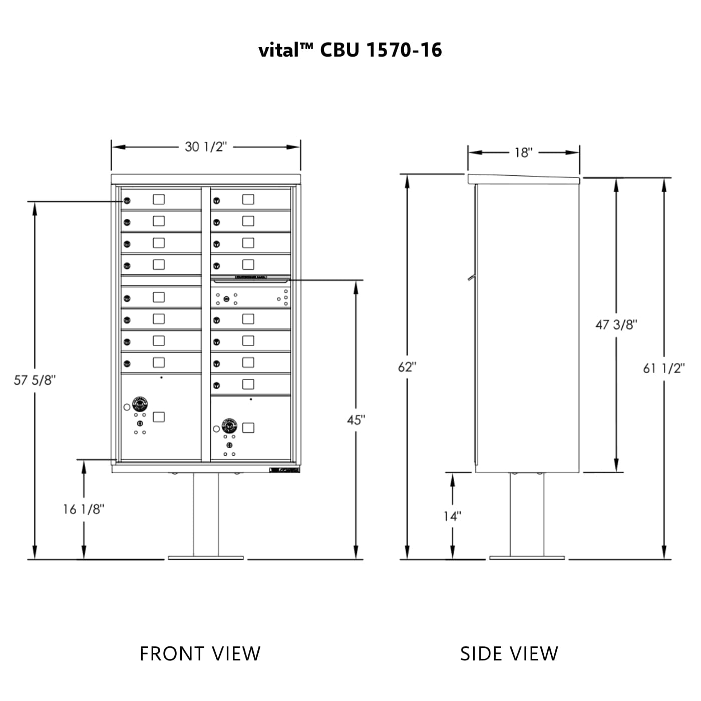 • Front loading, pedestal mounted CBU mailbox includes a carrier access door prepared for a USPS arrow lock (installed by local postal officials) for delivery/service to mailbox